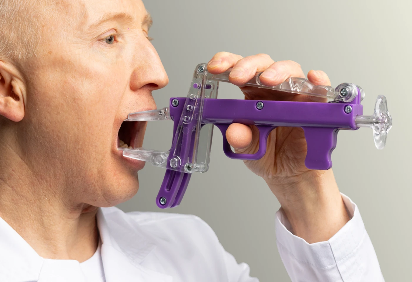За счёт активной тяги он восстанавливает траекторию движения нижней челюсти и величину открывания рта.